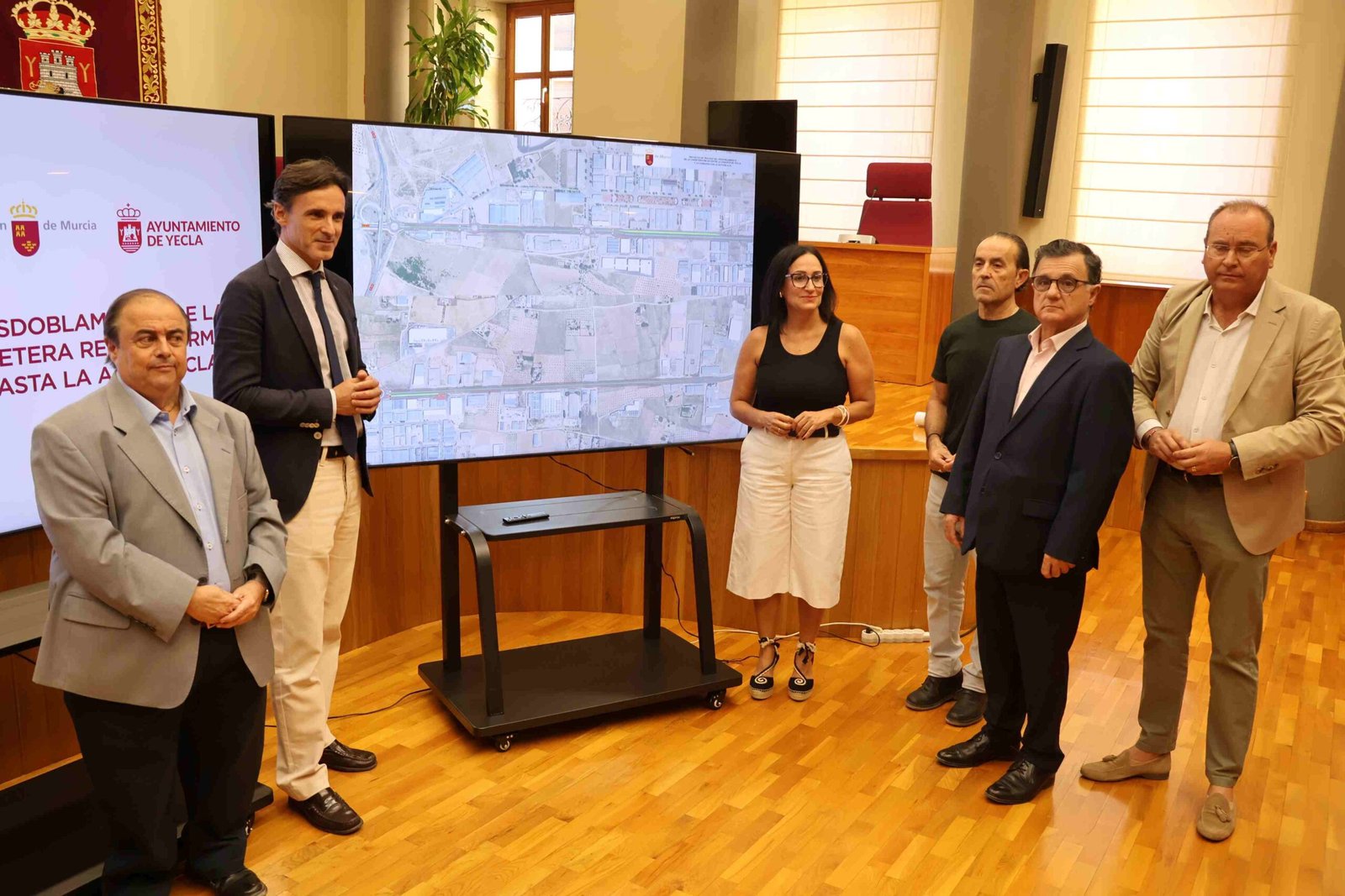 El consejero de Fomento, Jorge García Montoro, junto con la alcaldesa de Yecla, Remedios Lajara, ha presentado el proyecto de desdoblamiento de la carretera RM-425 en Yecla. Este proyecto, que conecta la variante del municipio en la N-344 hasta la autovía A-33, cuenta con una inversión prevista de 17,8 millones de euros y es fundamental para el desarrollo económico de la ciudad, especialmente para las empresas que operan en la zona.