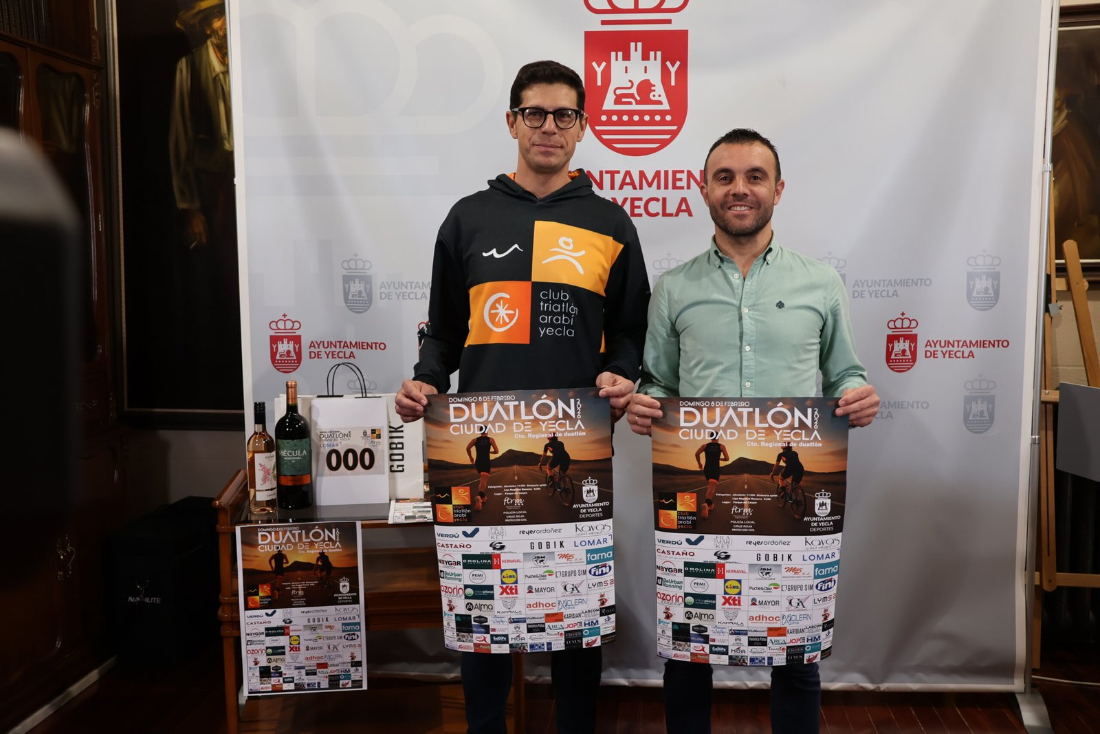El concejal de Deportes, Antonio Martínez, y el presidente del Club Triatlón Arabí, Jesús Muñoz, han presentado la XVI edición del Duatlón “Ciudad de Yecla”, que se llevará a cabo el domingo 8 de febrero. Esta prueba, organizada por el Club Triatlón Arabí Yecla, cuenta con la colaboración de la Concejalía de Deportes, la Federación de Triatlón de la Región de Murcia, Policía Local, Cruz Roja y Protección Civil.