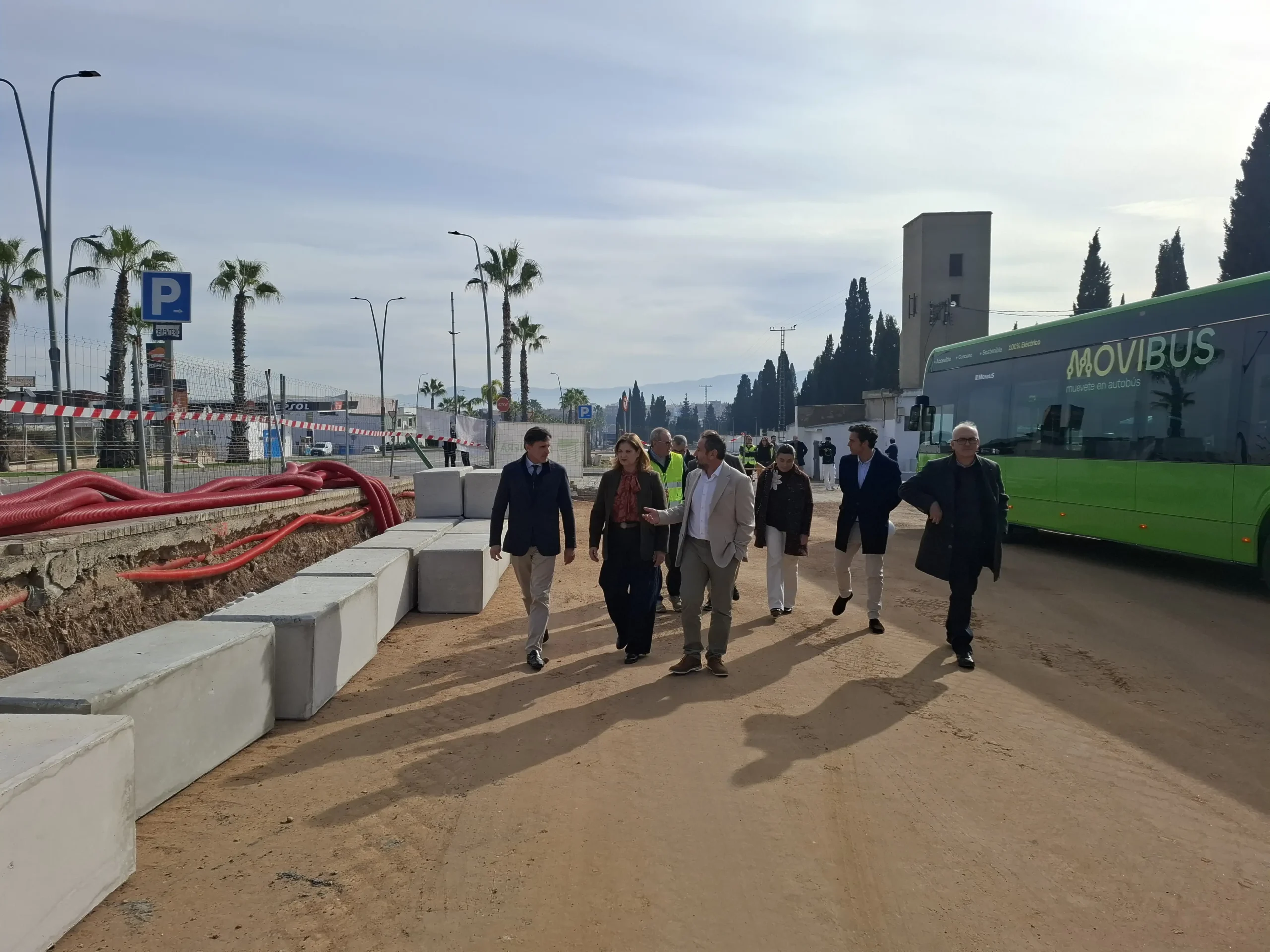 La alcaldesa de Alcantarilla, Paqui Terol, junto con el consejero de Fomento e Infraestructuras, Jorge García Montoro, han supervisado hoy las obras para la instalación de diez puntos de recarga que servirán a la nueva flota de autobuses 100% eléctricos Movibus.