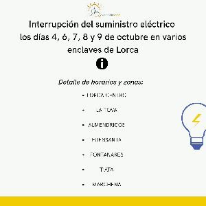 La Compañía Iberdrola realizará una suspensión temporal del suministro de electricidad en Lorca, programada para los días 4, 6, 7, 8 y 9 de octubre de 2025. Esta interrupción se llevará a cabo por la mañana y después de la hora de la comida, con el fin de llevar a cabo mejoras y mantenimiento en la red eléctrica de la ciudad.