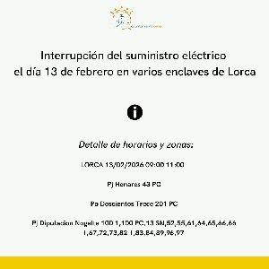 El corte temporal de energía programado para la mañana del próximo 13 de febrero en varias localidades de Lorca, ha sido anunciado por el concejal de Servicios Industriales del Ayuntamiento, Antonio David Sánchez Alcaraz. Esta interrupción del suministro eléctrico se llevará a cabo por la empresa Iberdrola con el fin de realizar mejoras y mantenimiento en la red eléctrica de la ciudad.