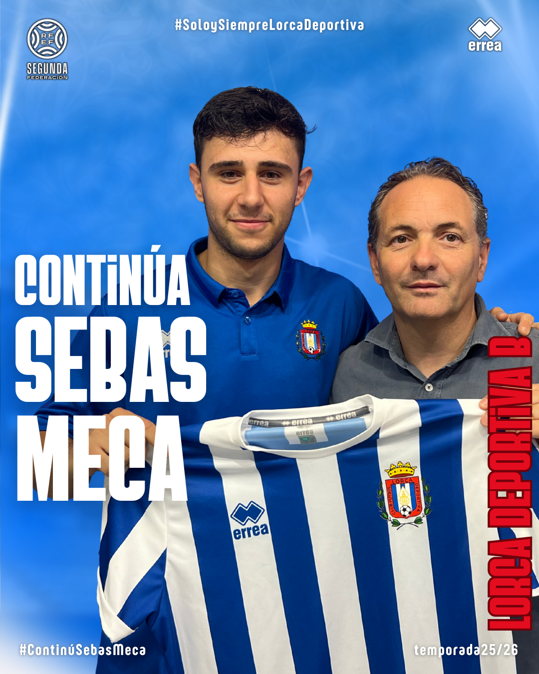 Sebastián Meca Cuadrado, conocido como Sebas Meca, natural de Lorca y nacido en 2003, ha renovado su contrato con el Lorca Deportiva por una temporada más. Este joven centrocampista lorquino estará bajo las órdenes de Juan Carlos Cuadrado en el equipo de Preferente Autonómica por segundo año consecutivo.